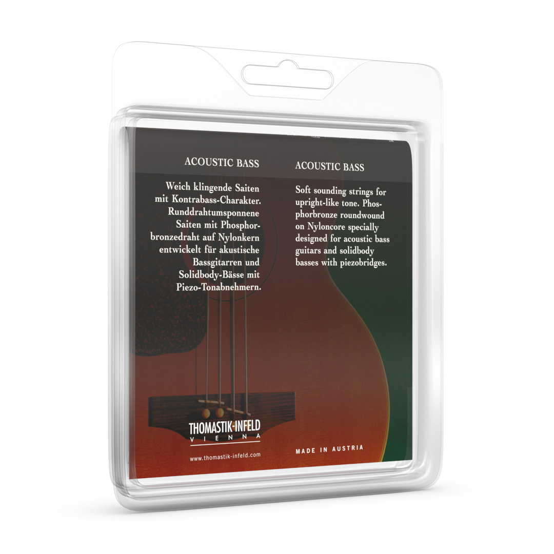 Ideal for acoustic bass guitars and piezoelectric equipped solidbody basses. This set has a phosphor bronze round wound winding around a nylon core which produces a smooth, organic, upright bass tone.
